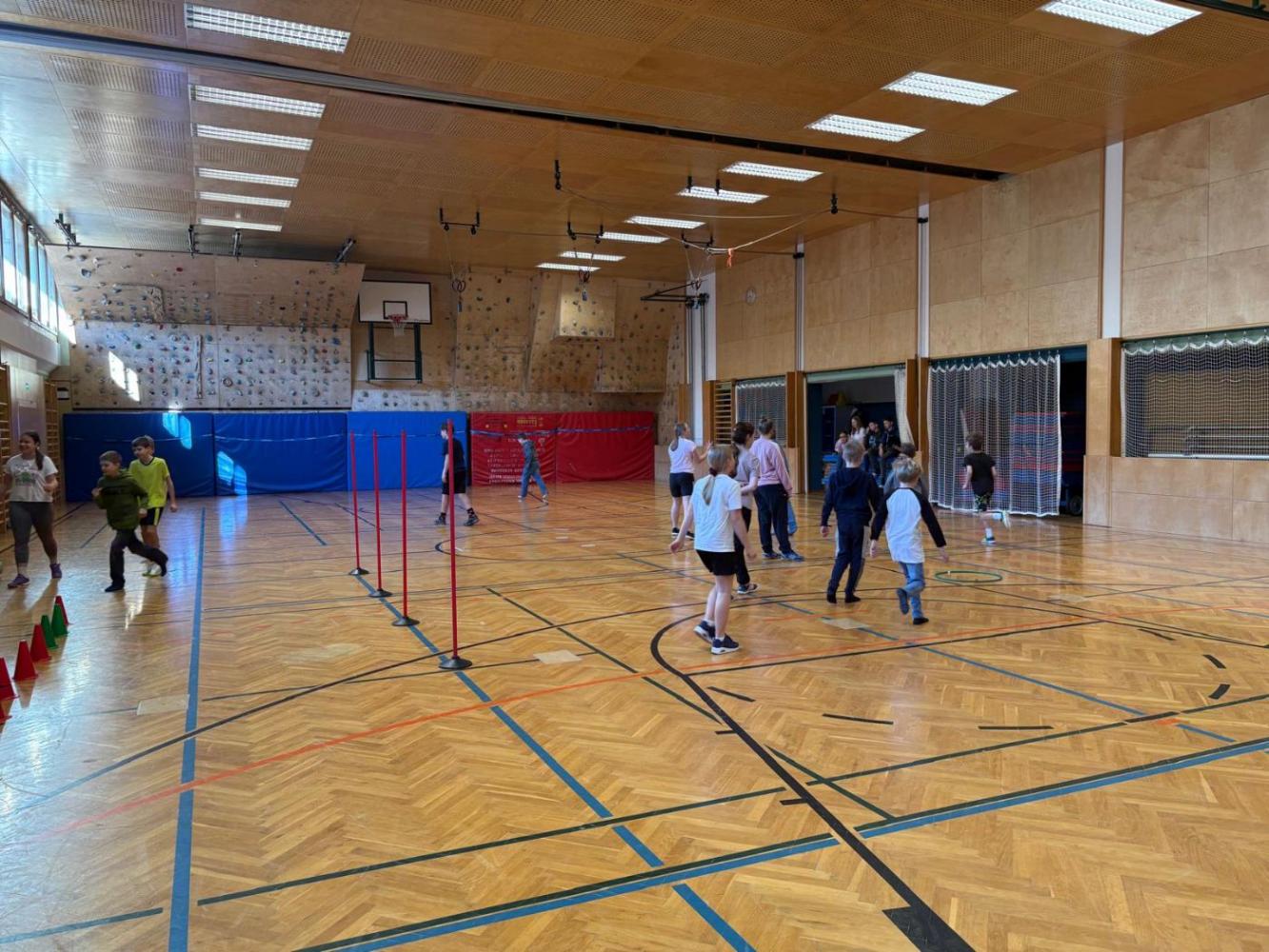 Für Bewegung und Spaß sorgte eine gemeinsame Turneinheit im Turnsaal. Auch ein Referat gab einen Einblick in das Lernen an der Mittelschule.