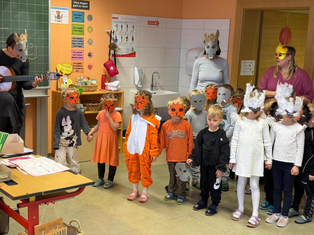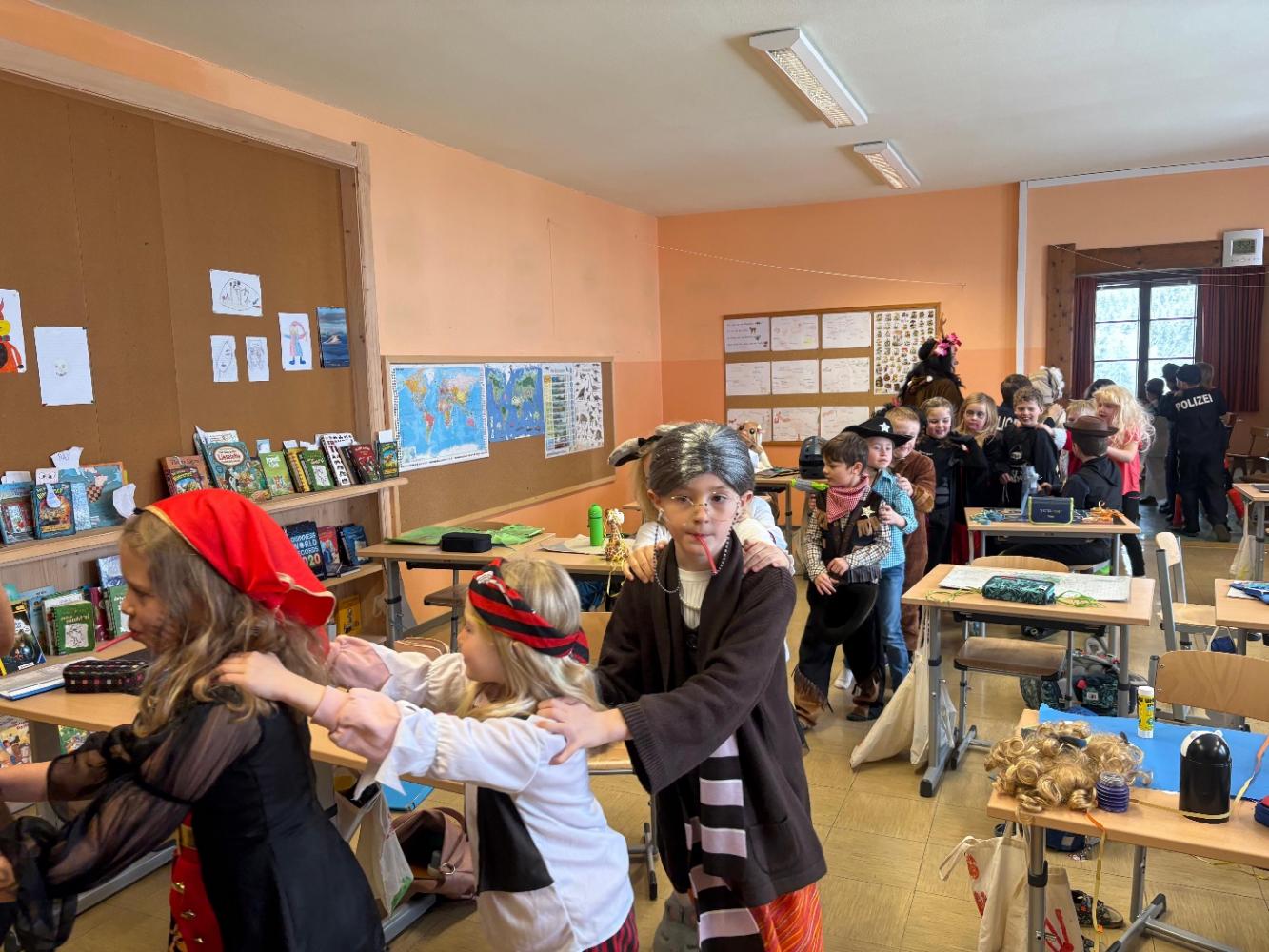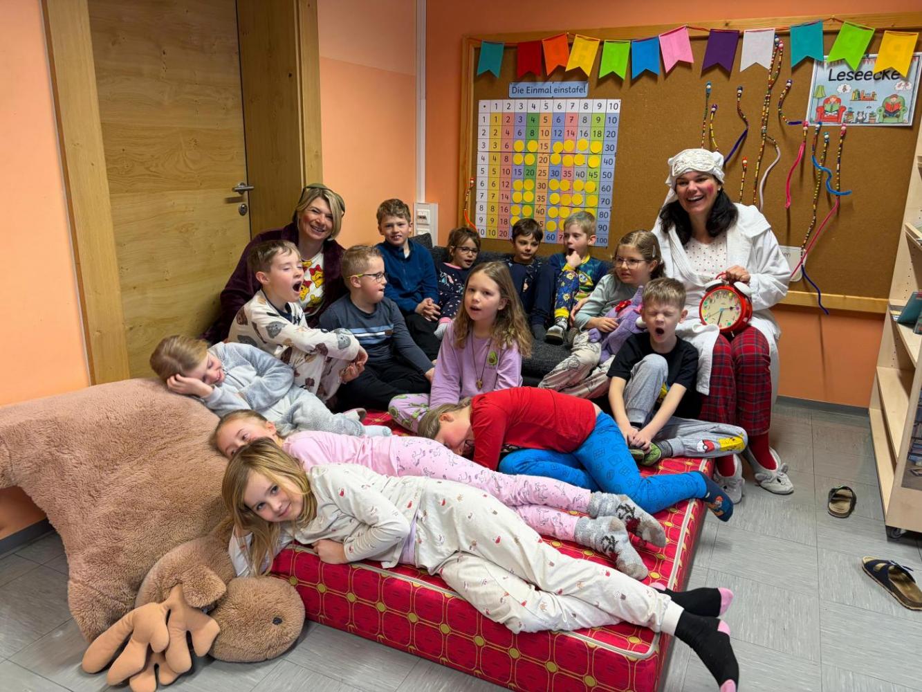 Der Rosenmontag war ein lustiger Schultag: Die Kinder und das Team der VS kamen im Pyjama in die Schule. Eine besondere Überraschung war der Besuch aus dem Kindergarten. Gemeinsam erlebten wir den „Karneval der Tiere“ und genossen eine tierisch-musikalische Reise. Ein gelungener Rosenmontag für Groß und Klein.