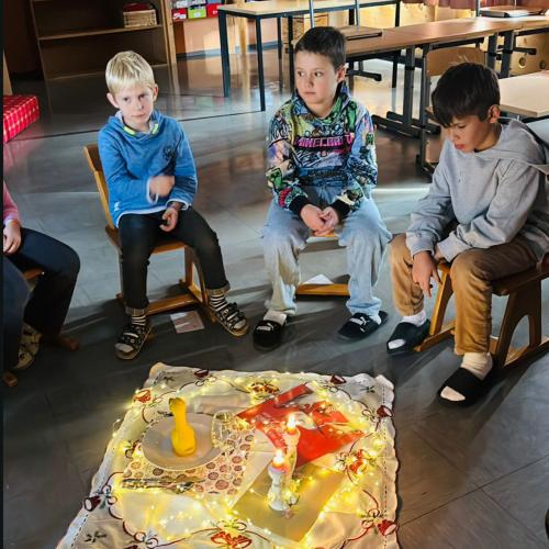 Die Auswahl der Bücher sorgte für Spannung und Schmunzeln: „Der gute Schneemann“ brachte winterliche Wärme, während „Wie sich die Weihnachtsgans vor dem Ofen rettete“ für viele Lacher sorgte. „Das Wichtigste an Weihnachten“, eine Nikolaus-Mutmachgeschichte sowie „Der Igel mit der roten Mütze“ durften auch nicht fehlen. Mit viel Herz und Ausdruck lasen unsere Lehrerinnen sowie die engagierten Vorlesepatinnen Hermine und Evi, die den Figuren Leben einhauchten und die Kinder mit ihrer Begeisterung ansteckten.